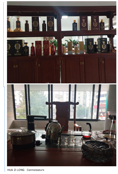 酒柜上陈列着华子龙不同系列、不同时期的好酒,12987酱酒酿造工艺,为新老酒友打造
