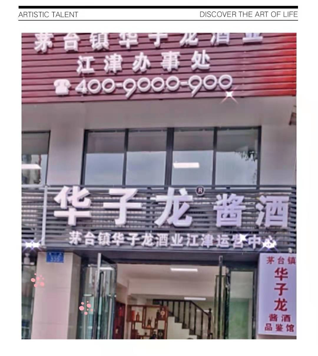 华子龙酒业江津办事处就设立在重庆市江津区大西门转盘处,一楼同时也是品鉴馆。馆内品种丰富,有“华子龙系列”和“猎牌系列”两个酱酒品牌。