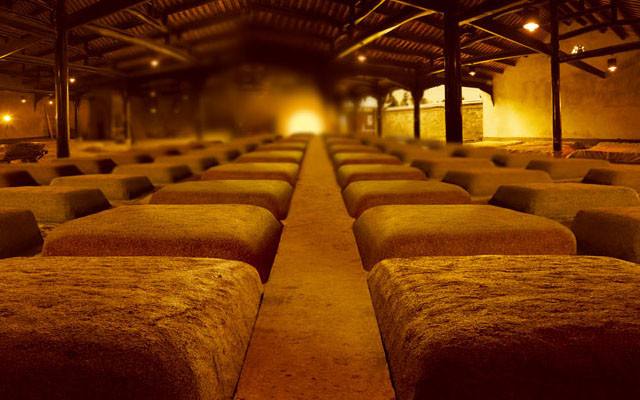 经过几个月超长发酵,酒醅分层出池,分层堆放,与辅料充分配比,再经人工精心装瓶,低温缓慢蒸馏之后方得优质酱香型白酒。