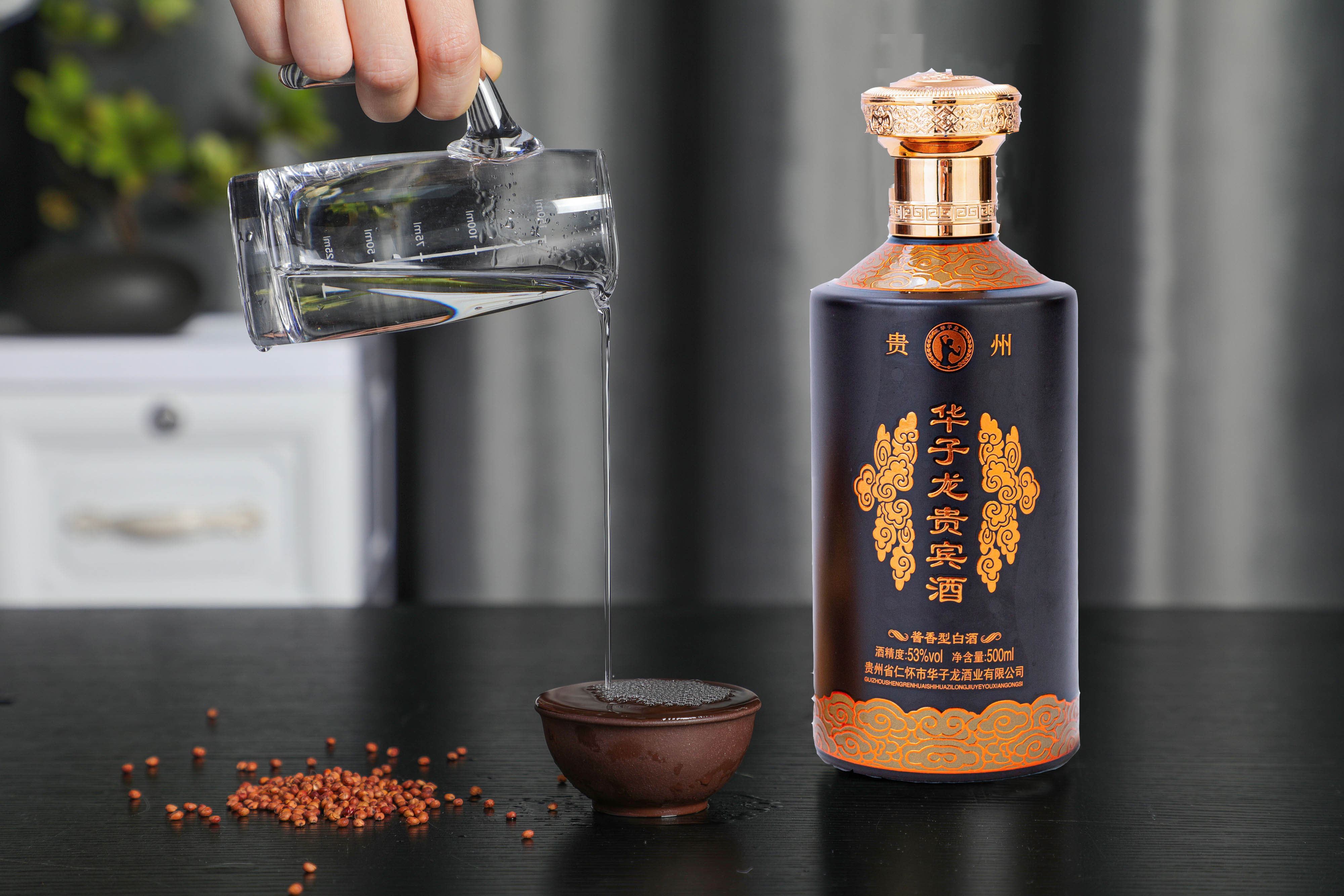 华子龙酱酒用料极为讲究,全部采用茅台镇本地产的颗粒饱满的优质红樱子糯高粱,经九蒸八酵七取酒,历经一年四季,窖存至少五年后再搭配陈年老酒盘勾调味,每一滴酒都在陶坛里酿足了时光,匠心制作,陈年珍品。